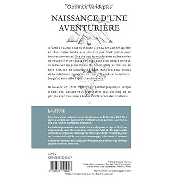 Après tant d'émotions ressenties, voilà comment je pourrais vous le définir ce récit de voyage :Un récit singulier dont Clothilde nous parle avec son c?ur, ses yeux et surtout beaucoup d'émotions : Les peurs, les appréhensions, les doutes, les décisions prises de but en blanc, l'affirmation, la certitude, l'absence totale de regrets, la confiance, le partage, l'émotion et l'émerveillement devant les paysages, la passion du moment présent, la richesse des lendemains, la variété des communautés, l'engouement pour les activités et les villes, la marche, l'avion, la moto, l'envie de continuer et l??envie de repartir. Sans oublier la véritable motivation d??une vie mouvementée. Poignant et touchant, une envie de raconter et de partager son parcours avec nous. Vous n'aurez plus besoin de voyager après cela car vous serez transportés à l'autre bout du monde à travers ces pages très vite lues et bien détaillées.